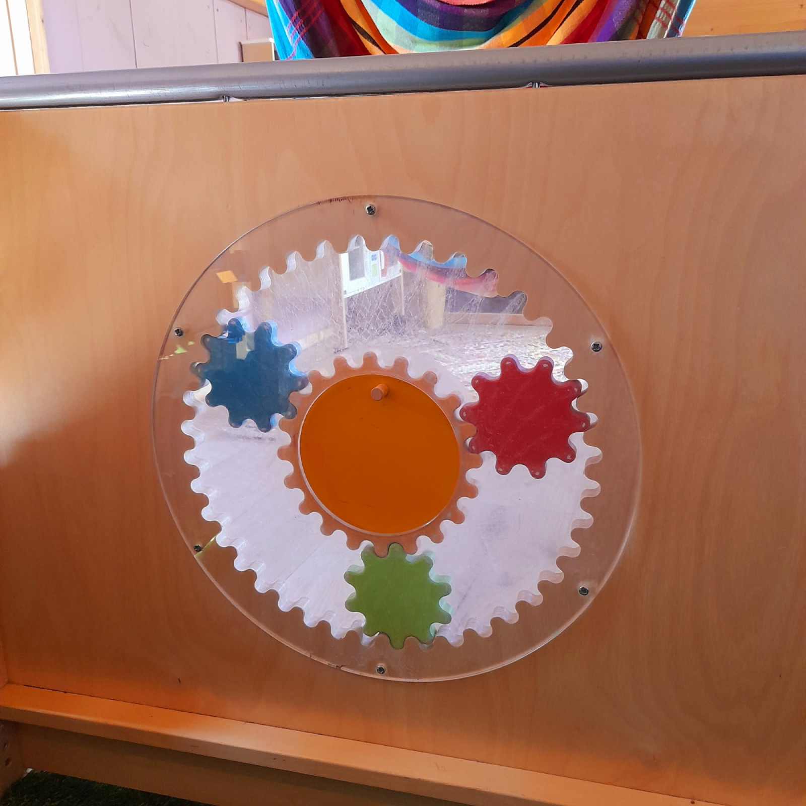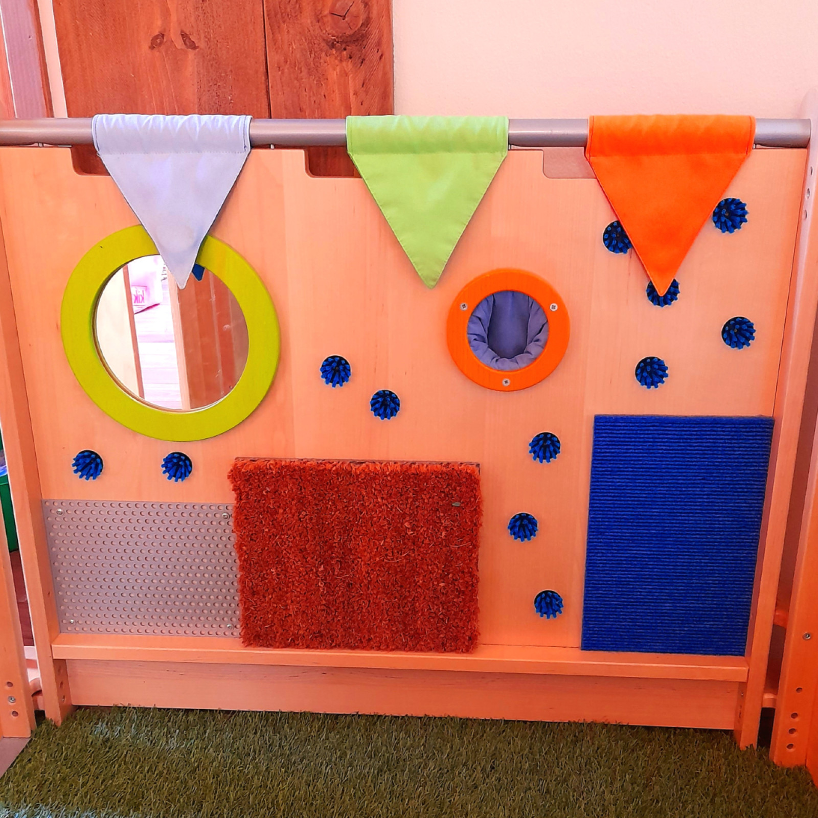 Im Gruppenraum befinden sich eine Sitzgruppe, eine Ruhe-Ecke, eine Spielküche, eine Explorationsecke und regelmäßig wechselnde Spiel- und Baumaterialien sowie verschiedene andere Sitzgelegenheiten und Untergründe (Laminat, Teppiche, Felle).